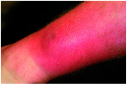 Gambar 1. Selulitis. Tampak merah dan teraba hangat