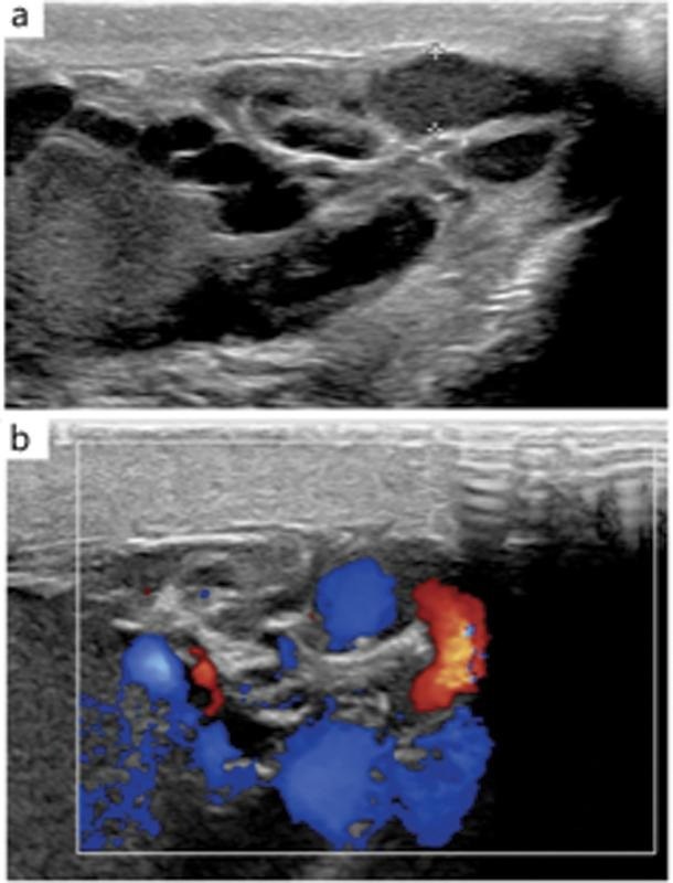 • Evaluasi Volume Testis: USG memberikan pengukuran volume testis yang jauh lebih akurat dibandingkan dengan orkidometer Prader. Ini penting karena atrofi testis ipsilateral adalah indikasi signifikan untuk intervensi, terutama pada remaja.